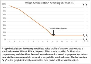 Both of those misunderstandings confuse an important question in valuation: What is the value of equipment and machinery that are in operation beyond their expected economic or normal useful life and continue to contribute value to an operating business? To address these misunderstandings and bring clarity to that question, I’ve been working with a number of MTS appraisers who have co-authored or reviewed a white paper on the Stabilization of Value. This paper and the addition of the term to the MTS appraisal lexicon was recently approved by the Machinery & Technical Specialties (MTS) Committee of ASA.